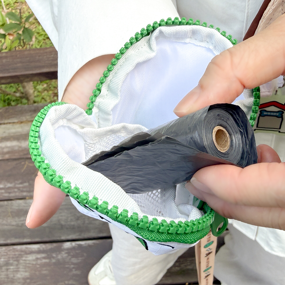 拾便包以小巧圓潤的造型設計可靈活掛於牽繩或包包上
