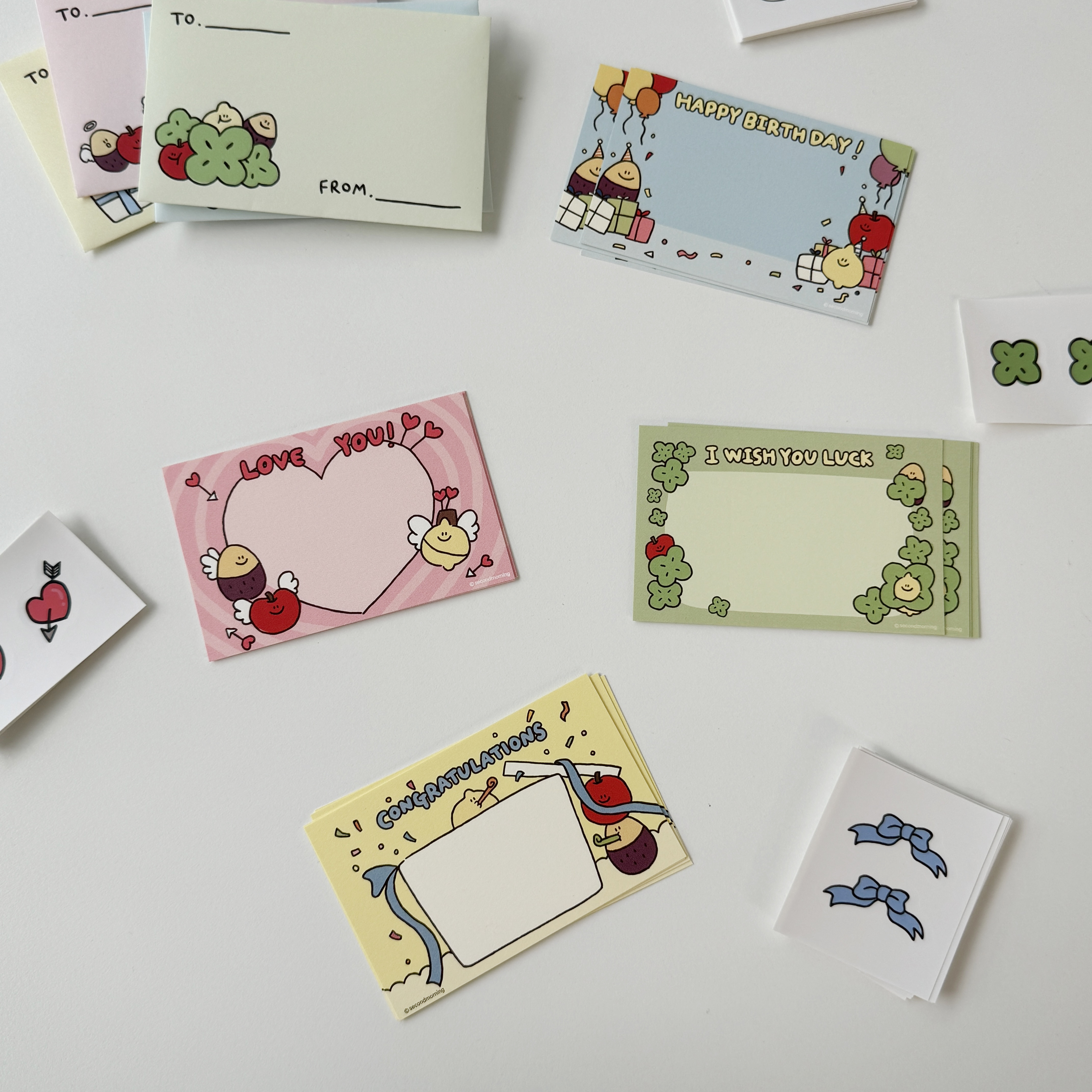 每組包含4張卡片、2個信封和2個貼紙,無論是寫信或送禮,皆能增添一份獨特的心意。